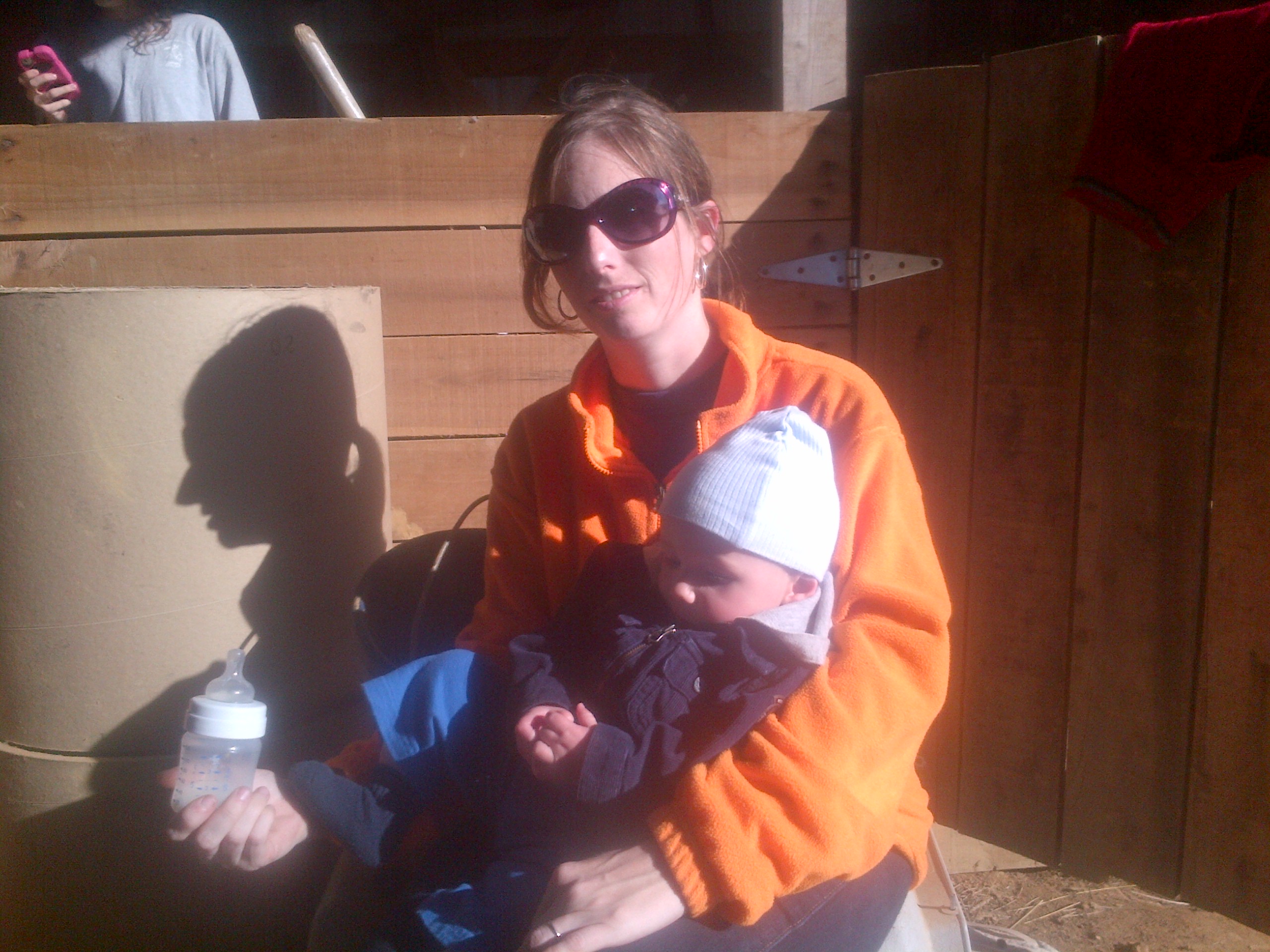 Tabitha’s done a great job helping the kids with their basics, so I am able to take Ian with me and juggle him along with teaching. I would hate to not spend my afternoon off with Ian, yet I would hate to pass up an afternoon off to spend helping the kids with their horses. Fortunately it works well to combine the two! Ian loves to be outside, and with four kids riding each week, there’s always someone to help hold Ian when my hands get full.