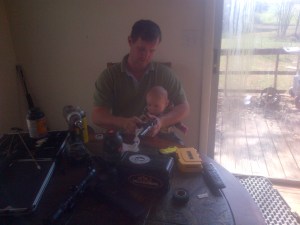 firearms as a child, so that guns are never that forbidden sin that some households make them into. He wants guns to be a common fixture in our home, albeit with trigger locks and stored in a locked safe with ammunition stored elsewhere. Brinn also wants Ian to start learning the responsibilities that are associated with gun ownership. While he might be a little young to clean a gun right now, Ian is definitely becoming familiar with the ritual of it. The second Ian is old enough, he will be in TWRA’s hunter safety course to certify all the safety training that he will have already learned at home. The first of all of these rules, it to always control your muzzle. If Ian never wants to hunt, that’s completely fine with us, but if he ever finds himself in a dangerous situation with guns, he will know how to react and handle the firearms safely to protect himself and others around him.