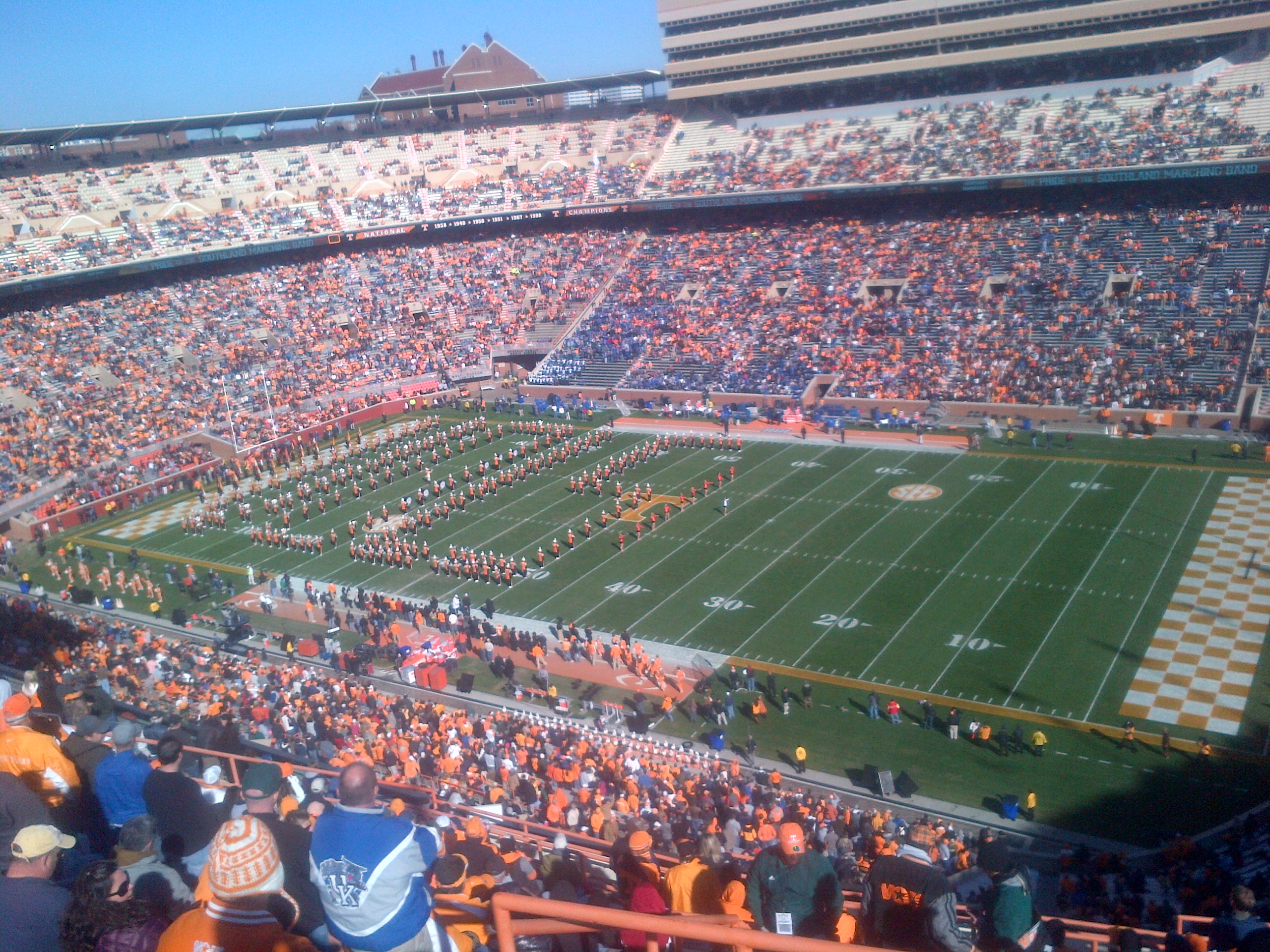 2. The color: Orange is such a festive color, and it’s one that no one (in his or her right mind, anyway) would wear just for the sake of fashion. Orange means Tennessee. A giant blob of orange means a hoard of Tennessee fans. And the color is another fun tradition since General Neyland settled on orange as the school color because it was the color of the centers of the daisies that grew outside the stadium.