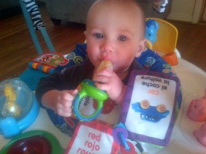 Ian celebrated his first Thanksgiving last week! We had a big day of friends, family, and food! The day started with a mad dash to do a quick once over on the house to try to make it presentable before family started arriving, but we had to pause in the middle once Ian woke up. He was ready to play!