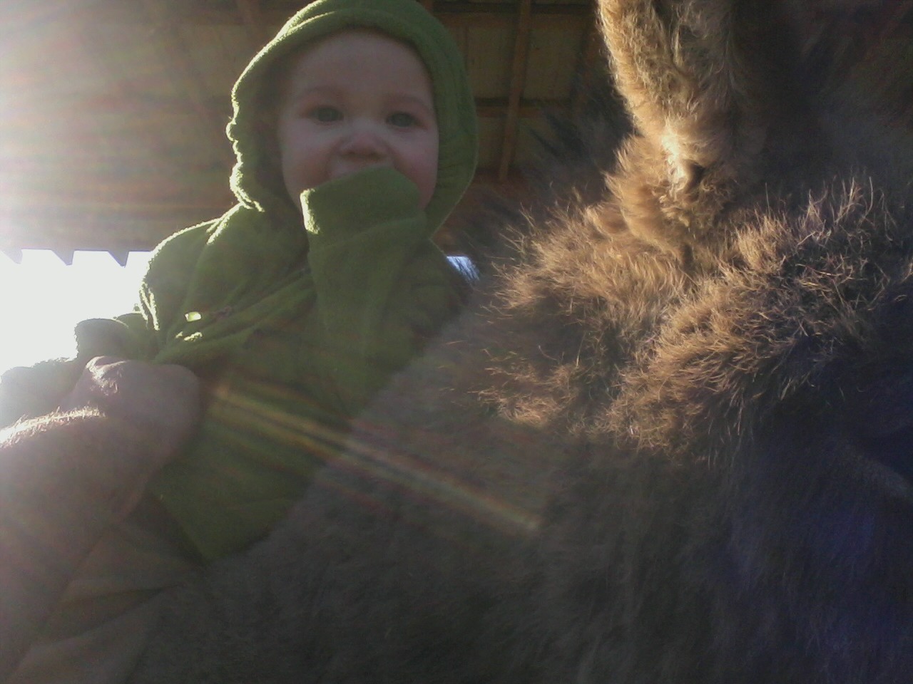 going to feed animals. Our newest chickens cluck and and carry on louder than any other chickens we’ve ever had. Ian giggles up a storm when he hears the chickens’ racket. If we make clucking noises at Ian he grins and crawls towards the back door.