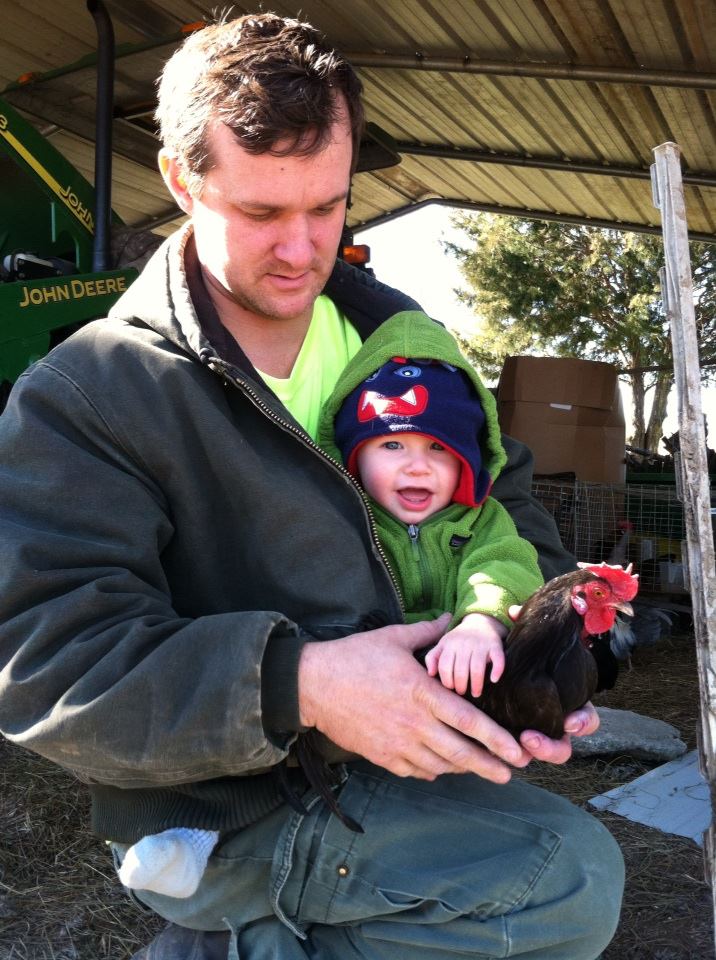 At just eight months old, Ian already has such a love for animals. I’ve written before about how much he loves his puppies, and how much he enjoys bouncing on Reggie, and now he’s learning the delights in raising chickens.