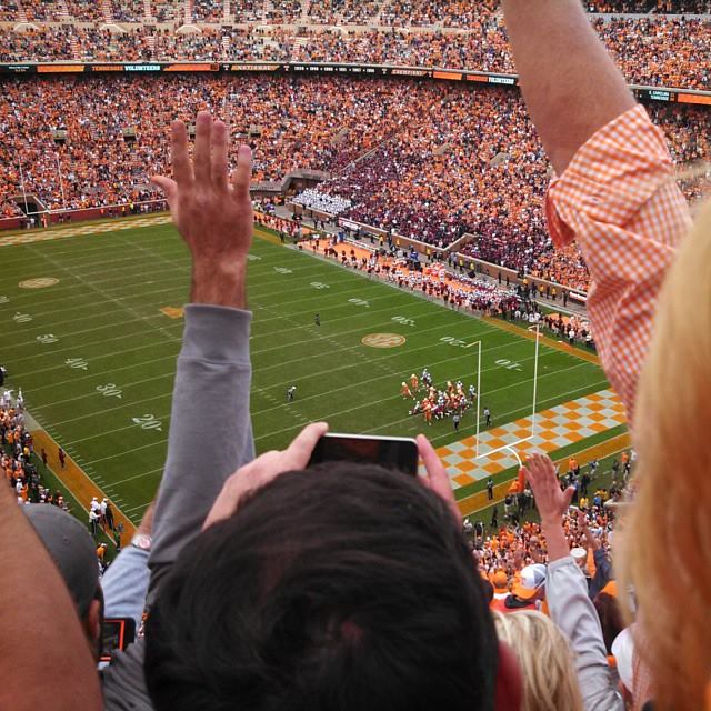 After an evening of apple picking, Ian and I got up bright and early on Saturday for a big day of events. Ian spent the morning with his Nana, and afternoon playing with Aunt Joy, while I attended the Tennessee/South Carolina Game. What an amazing event! Tennessee hasn’t won against a ranked opponent since Lane Kiffin left, despite a valiant effort against Georgia a couple of weeks earlier. The vols really waited until the last SECOND (well, technically until the last 2 seconds) of the game to pull out their win. This is the biggest win they’ve had in 3 years, and it just so happened to be the same game that vol legends attended for the vol walk.