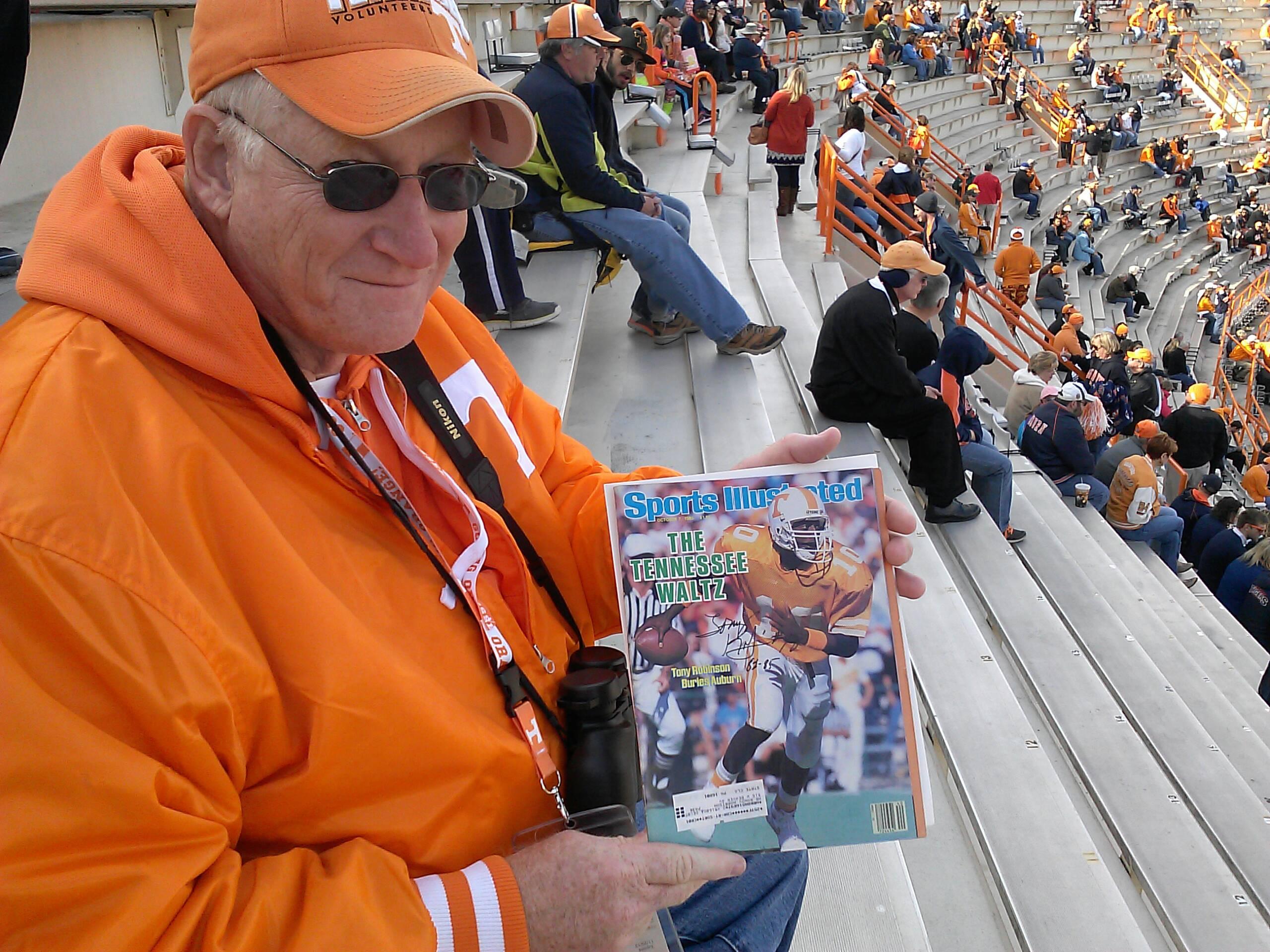 I mentioned in my last post how excited my dad was to see Tony come down the vol walk then run through the Power T with Coach Majors at the October 19th South Carolina game. This was Tony’s first time returning to Neyland since 1985. Then, just last Saturday on November 9th, the university brought Tony back again to be featured as the Vol Legend of the Game. While the current group of vols didn’t fare as well against Auburn as Tony’s team did, it was still an exciting day.