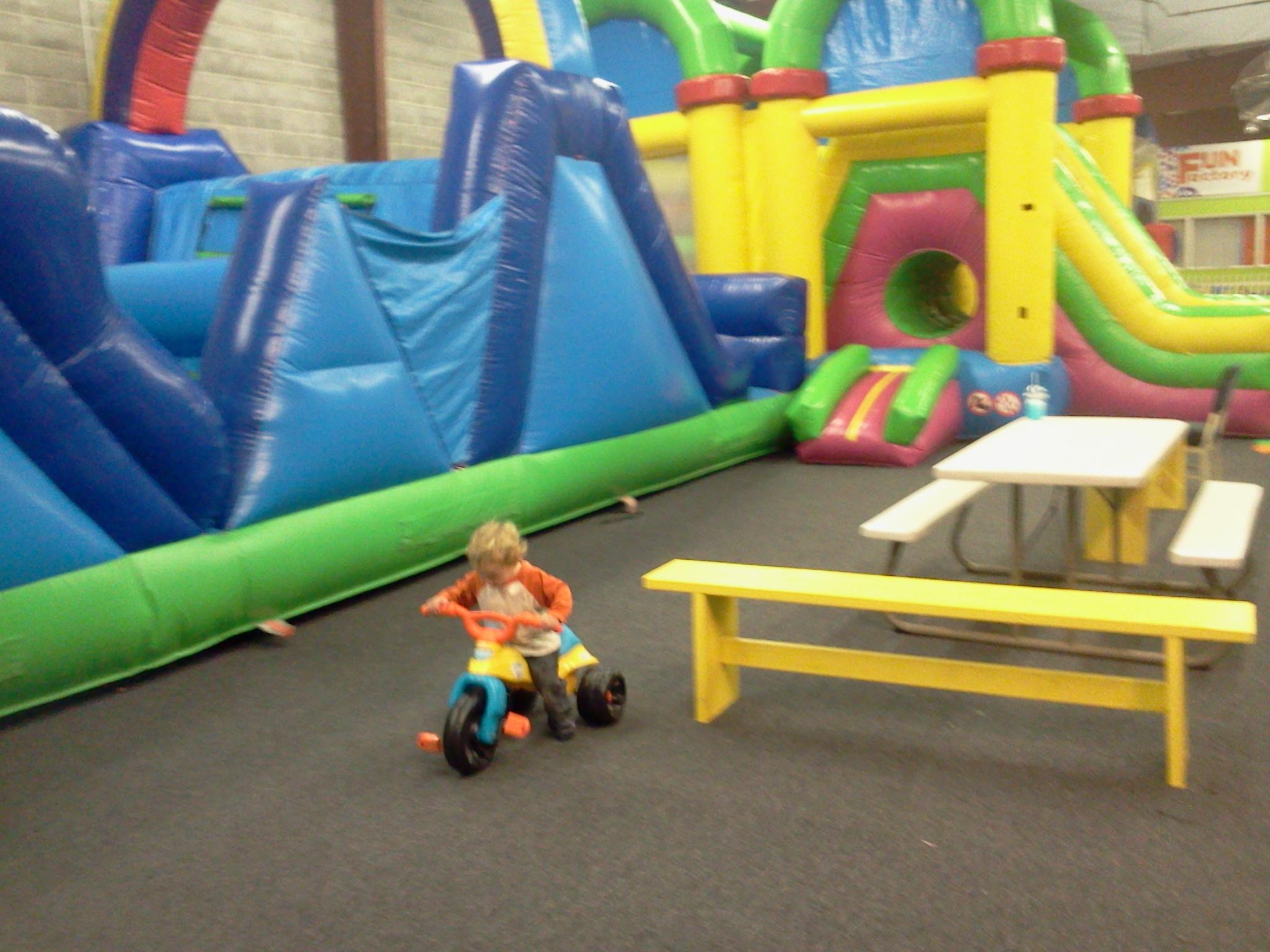 I spent some of Friday evening wasting time and scrolling through Facebook, largely ignoring most of the updates and shares, but pausing for photographs until I happened upon an update about someone taking her child to visit the Fun Factory. Now I can’t even remember whose update I read with this location, but it sparked an idea in my head. After a few minutes of searching, I found a Facebook page and a Cookeville location. I learned that the Fun Factory is a giant indoor playland for children, mostly available for birthday parties and so on, but more importantly, they have open play hours! $6 for open play (roughly a 3 hour period) during non-peak hours. Adults play free!