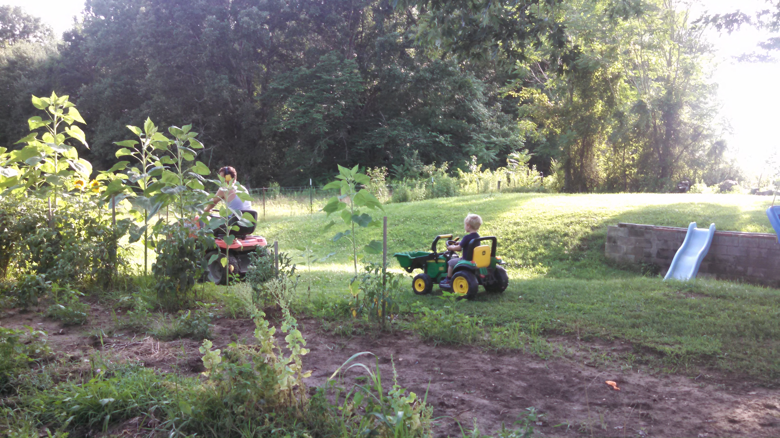 and watching Ian tear around the yard on his John Deere. He has such important tractor oriented tasks to complete, you know.