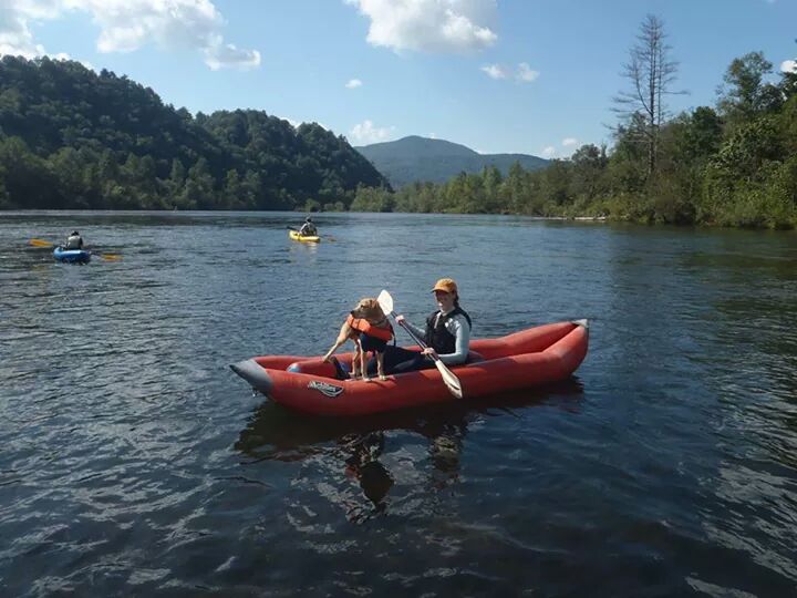 back home. We all met at the river and headed upstream for one of the most enjoyable runs we’ve ever taken down this river. The day dawned clear and bright, with temps approaching the upper 80’s. This is crucial on the Hiwassee as the water typically runs right around 55 degrees. That’s Fahrenheit people! So despite the sunny rays beaming down, I clad Ian and myself (and Mogwai for that matter) in fleece to combat the water’s chill.