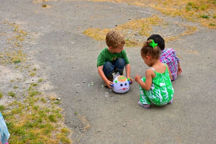 new presents (garden tools from Ms. Marilyn) to work the footing in the arena. Ian opened some fantastic presents, including a bubble machine from Grandma Cross, fishing bobbers (another