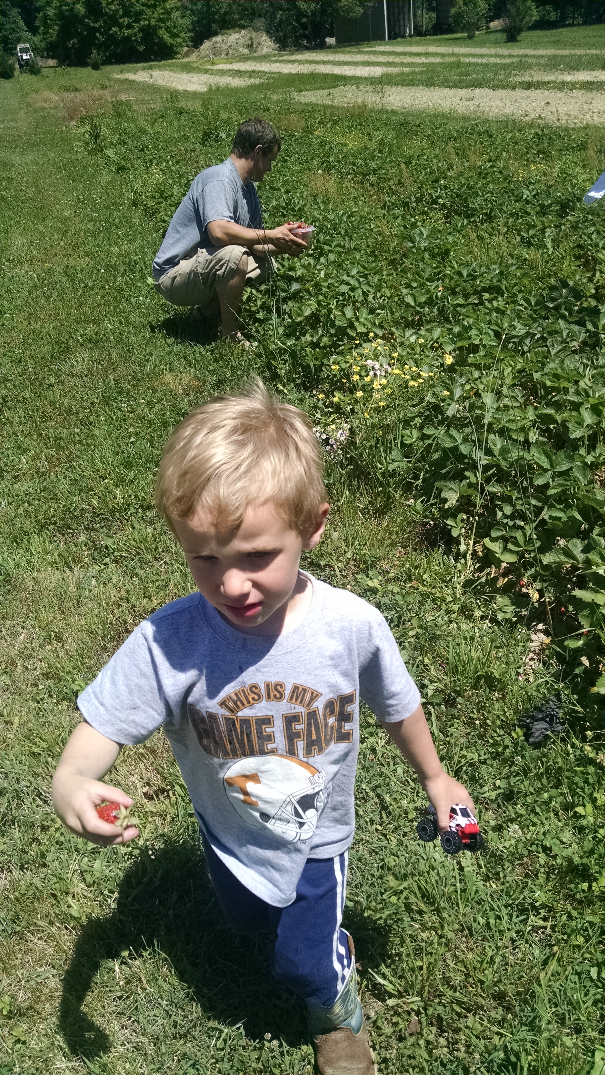 Because birthdays are a big day in the Kiser home, I took an annual leave day from work so that we could celebrate all day with Ian. We began his day visiting Charity’s Bakery. For weeks, whenever we asked Ian what he would like to do for his birthday, his answer remained the same: get lots of cakes! Because there would be a cake at Ian’s party later in the week, we compromised on getting lots of cupcakes for the day. Our next stop took us to the TTU Farm. The university agriculture department opened their organic strawberry patch open to outside customers this year, so we loaded up our quart containers and took off to let Ian pick as many strawberries as he could eat. After picking around a gallon and a half of strawberries, Ian proceeded to eat about a quart on the drive home.