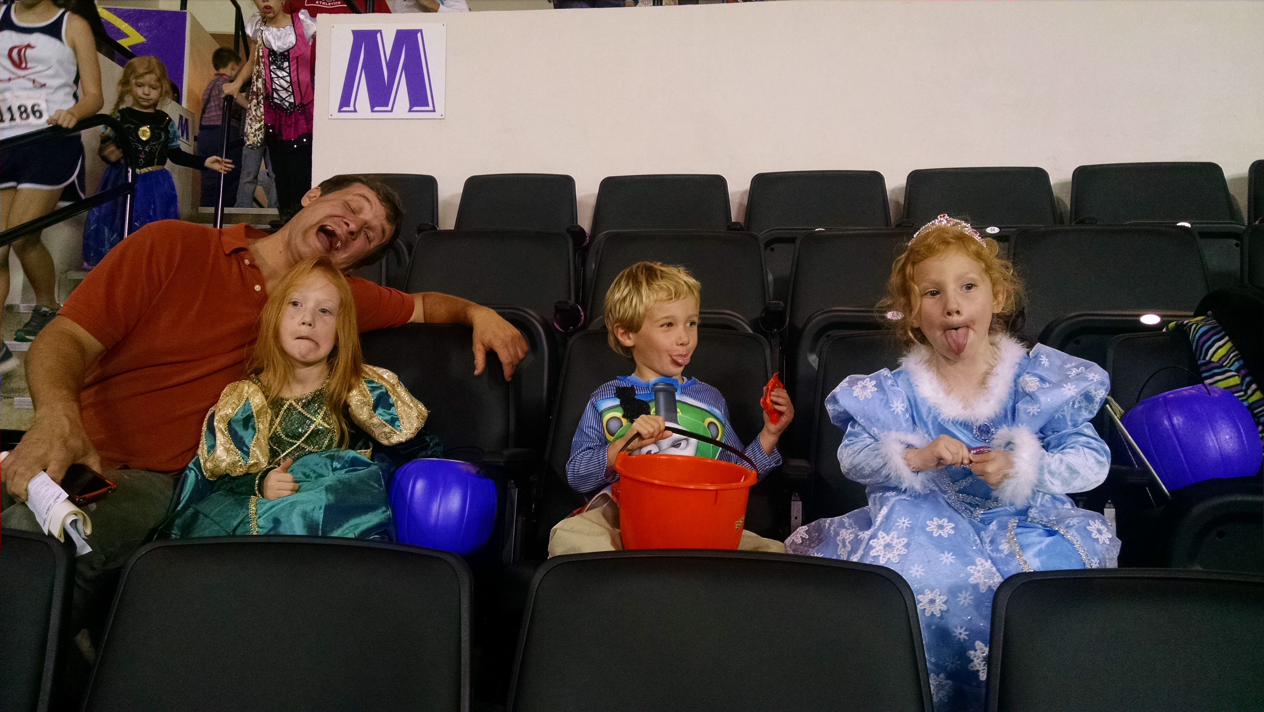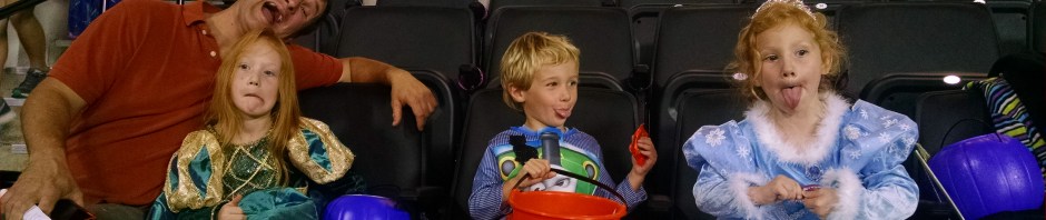 basic concept is this: vendors (all of our athletic programs, local businesses, university clubs and offices, etc.) set up tables around the concourse, kids walk around the concourse and stop at each table to trick-or-treat. After kids trick or treat, they enter the basketball arena floor and obtain signatures from the men and women’s basketball players, then watch the teams perform. All of this kicks off basketball season for the Golden Eagles.