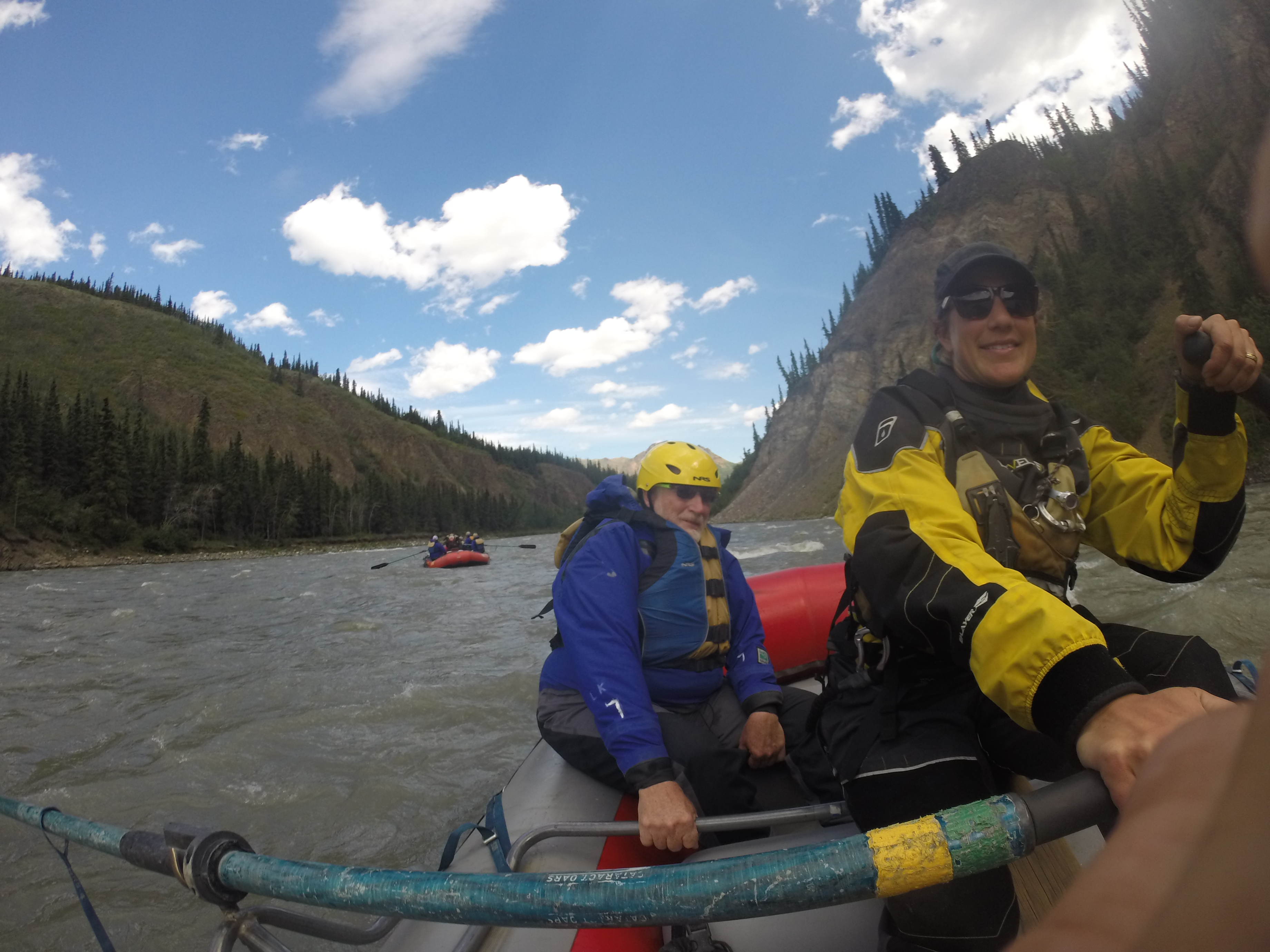 averaged 33-36 degrees, so hypothermia was a very real danger despite the July heat wave Healy was experiencing. Because of this very real concern, the guides had a very different set of priorities than we do on the southeast rivers. On the Ocoee, guides try to prevent their customers from swimming in areas with undercuts or foot entrapment hazards. Alaskan guides had to avoid all the fun holes and surfs that Ocoee guides would have thrown themselves into for body surfing or back stacked a boat to take advantage of some fluffy carnage.