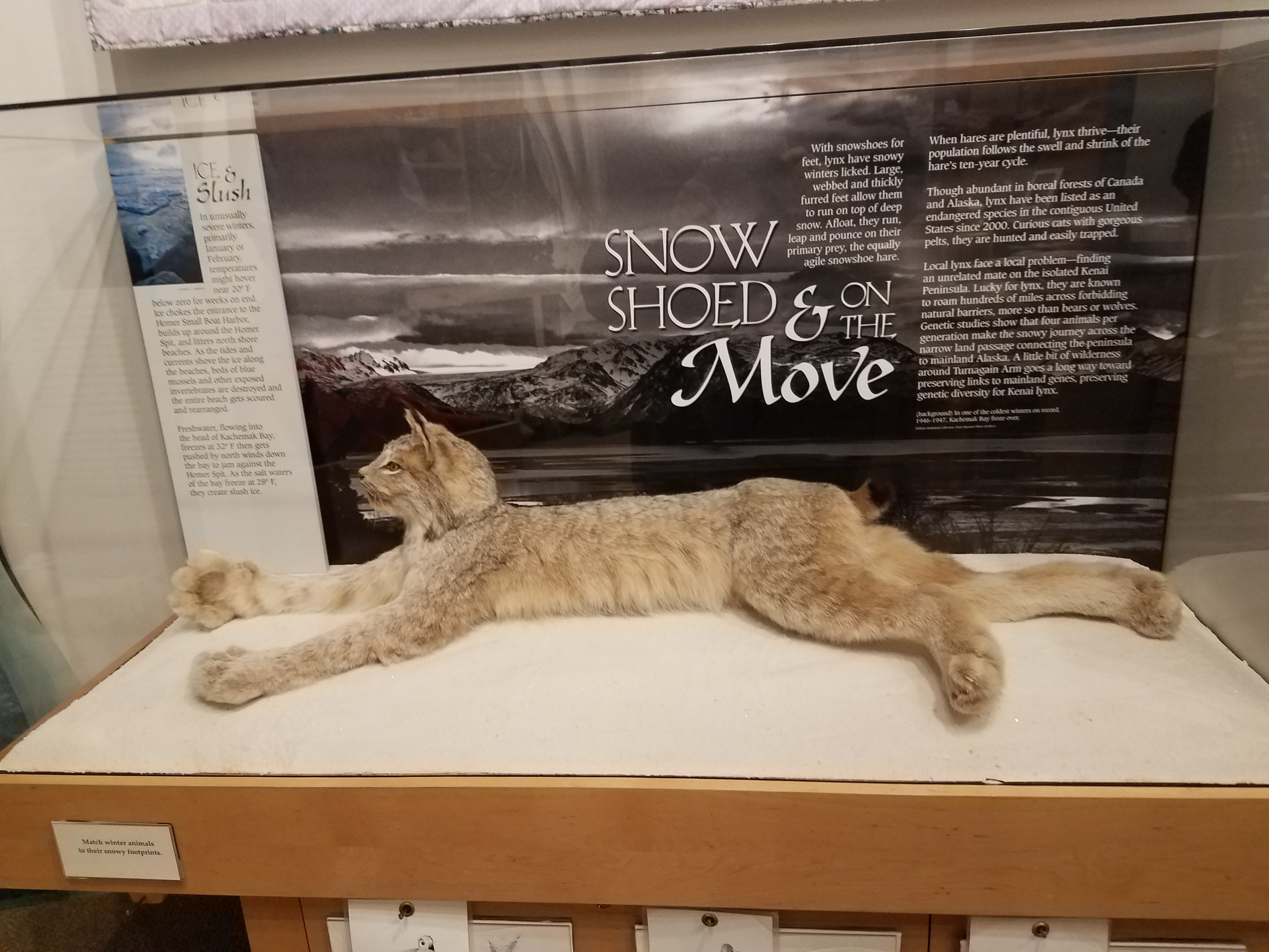 Desperate to warm up, I was completely happy to spend some time exploring Homer by car. We did stop to view a glacier that extends into Kachemak Bay, and we even drove out to see the road that the Kilcher family (from Alaska: The Last Frontier) lives. After seeing a few more sights, we stumbled on the Pratt Museum. We stopped in here to learn more about the area, its activities, and its wildlife. Then we found a manicured trail right outside the museum, so Brinn, Ian, and I went hiking for an hour while Grandpoppa took a break and reviewed his museum photos.