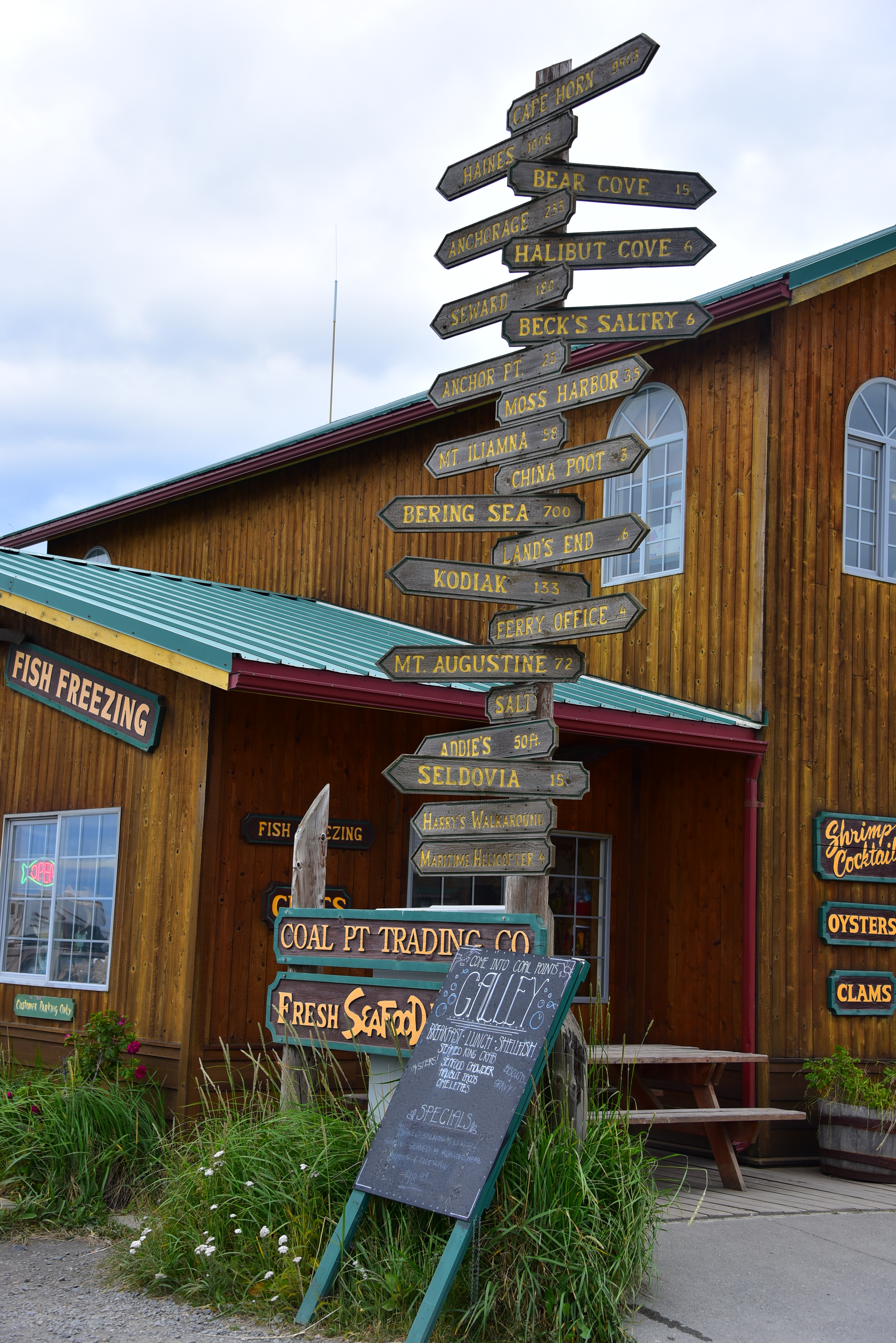 Bright and early after our usual vacation breakfast of toast, jam, eggs, and bacon, we hit the road for a day trip to Homer, halibut capital of the world. Our itinerary included a trip to the famed Homer Spit, a stretch of land at the tip of the Kenai peninsula which extends out into the Kachemak Bay. The entire spit is less than 5 miles long, and in some places, you can easily see both sides of the bay surrounding it.