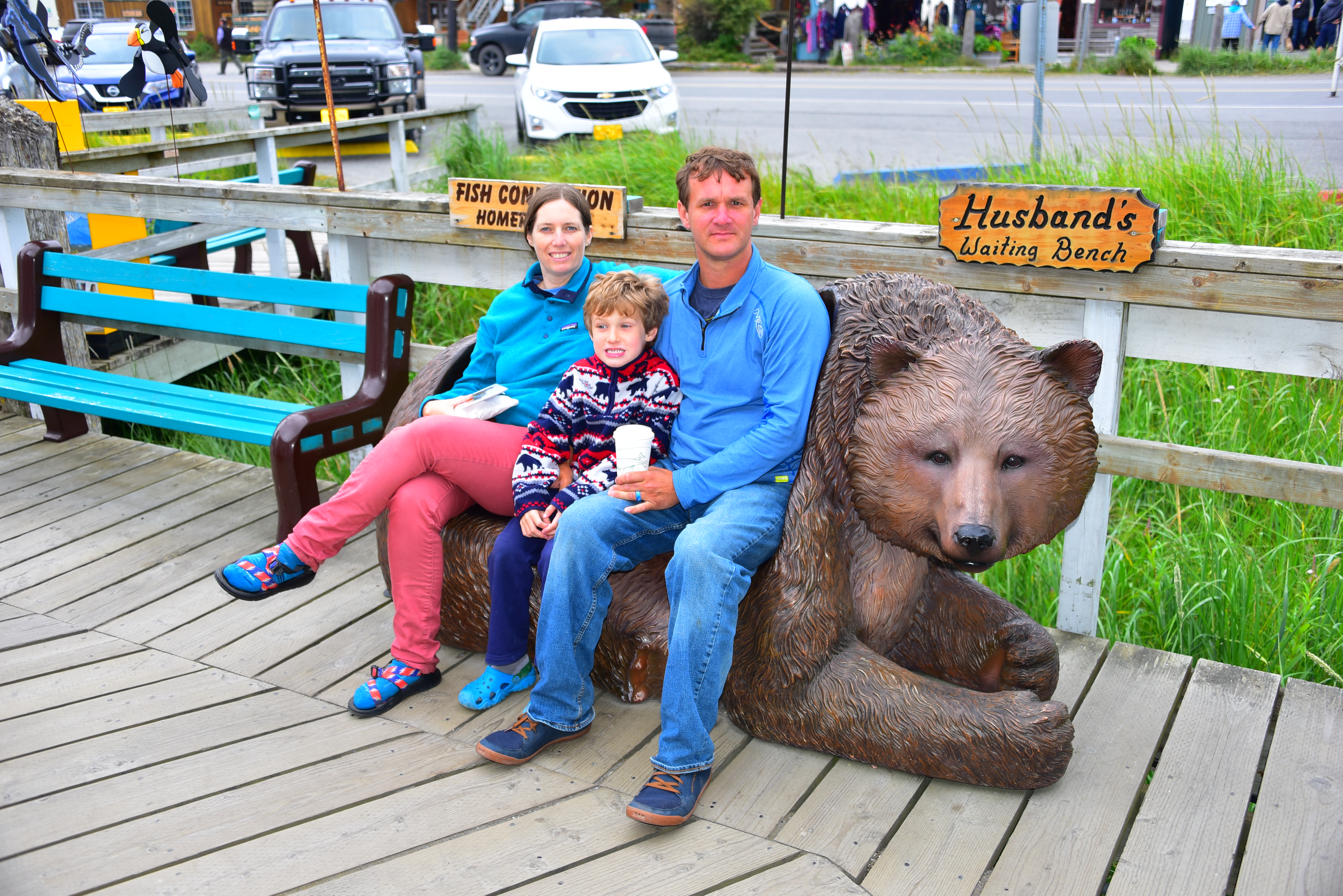After some shopping, we started weighing our options for lunch. Obviously the boys wanted fried halibut. When in Rome… We easily weeded out the few non fish options (there was actually a pizza place on the spit) but had a harder time deciding which place was for us. We ultimately ended up going with the Harbor Grill, largely for its location. The Harbor Gill was located right next to the dock, so Brinn was able to watching fishing boats come in and unload giant drums of halibut. The limit in Homer is only two halibut per person per day, but these fish were so big that a couple of people could bring home 80-100 pounds of fish from one trip! Grandpoppa and Brinn enjoyed their fried fish, as they should. It was likely the most expensive fried food any of us have ever had! I had shrimp, which was good, but not $30 good. Great experience, but not one we’ll likely repeat.