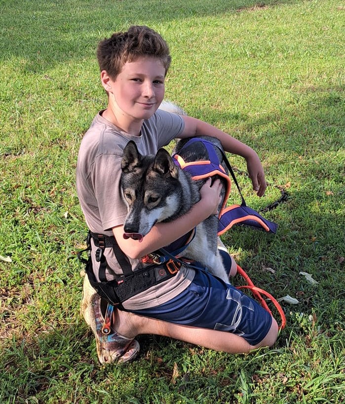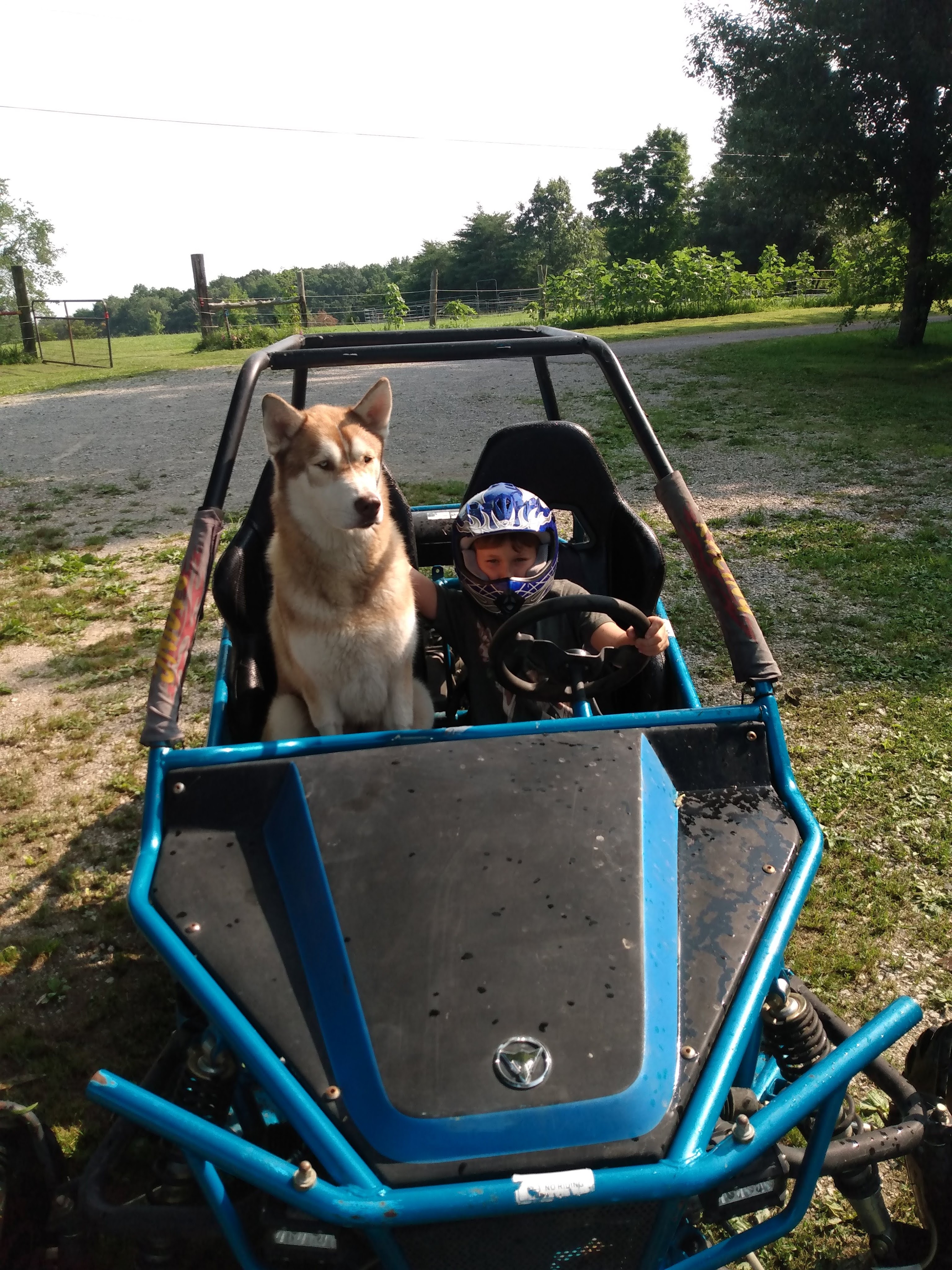Balto, husky #1, moved in with out family on Easter day, 2019. Balto, born March 19, 2019, satisfied Ian’s conviction that life is not worth living without a husky. Since joining our family, Balto has become Ian’s ride or die partner, and has claimed permanent “shotgun” status as the co-passenger of Ian’s go-kart. So far Balto enjoys running in harness, but is in no hurry to go fast.