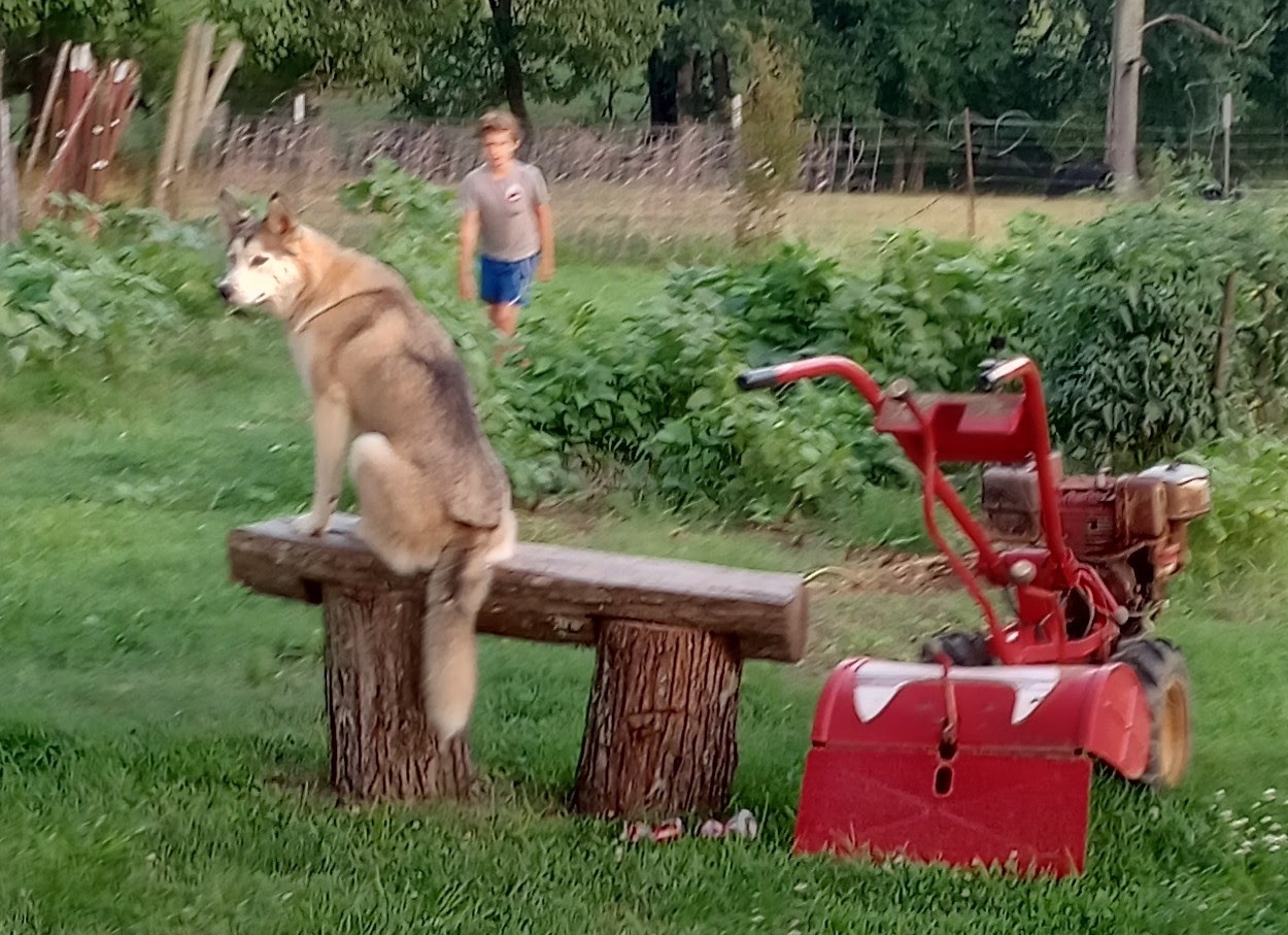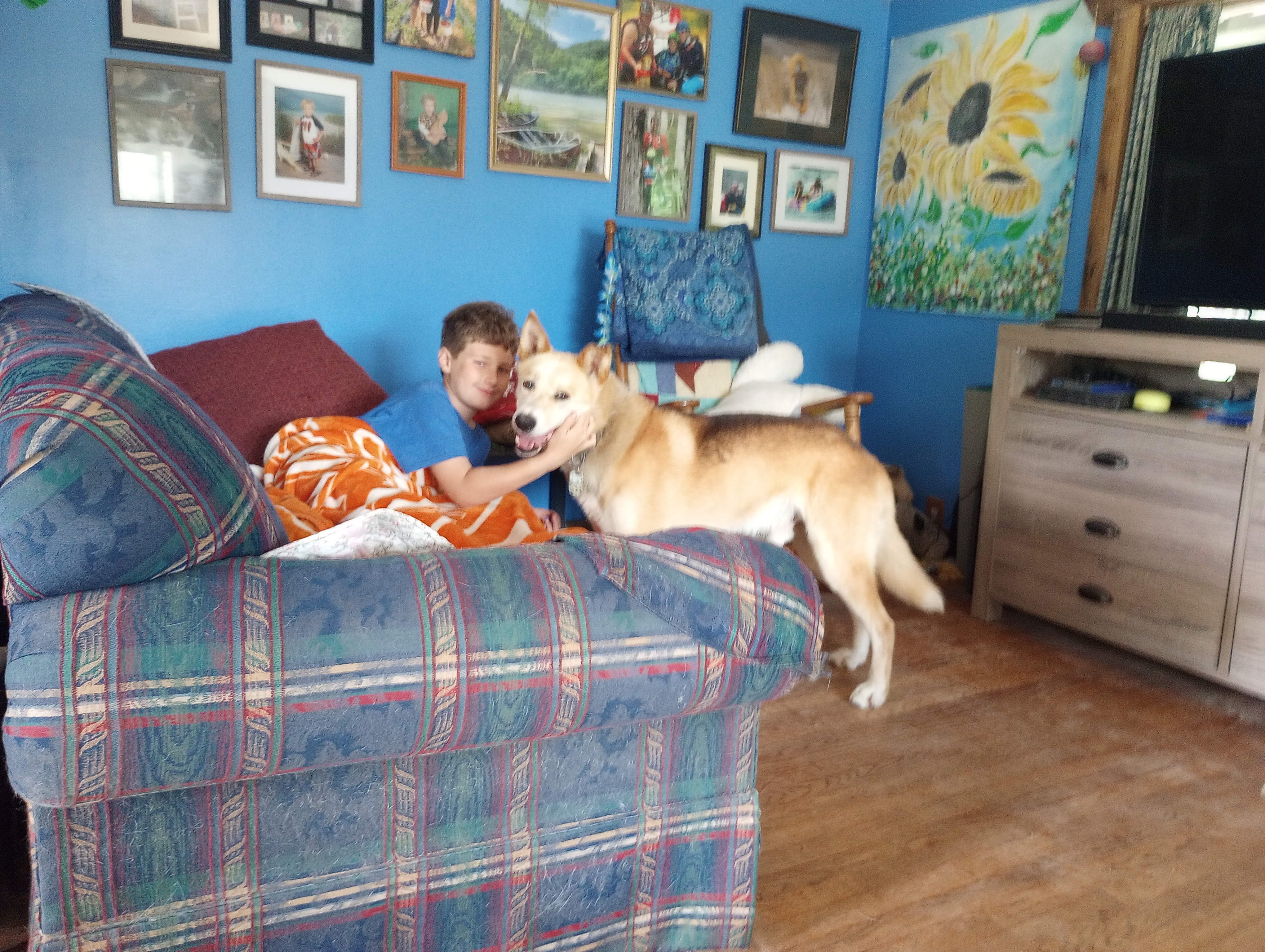 We’re making lots of mistakes as we go with this blended team, but we sure are learning a lot. Ian’s had to step up his ability to communicate clearly with his voice and body language, and I’ve learned that all four dogs need their own special one-on-one time with each of their humans everyday. Grandpapa just shakes his head at Pilgrim reclining on the couch and Falcon hugging his armload of toys and remarks that we’ve ruined perfectly good sled dogs. But that’s okay. I have a feeling the boys are going to laugh at our idea of running and training this fall.
