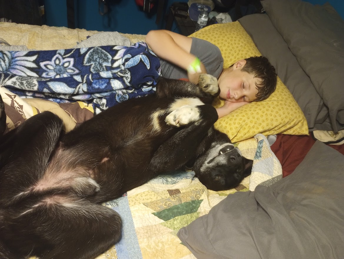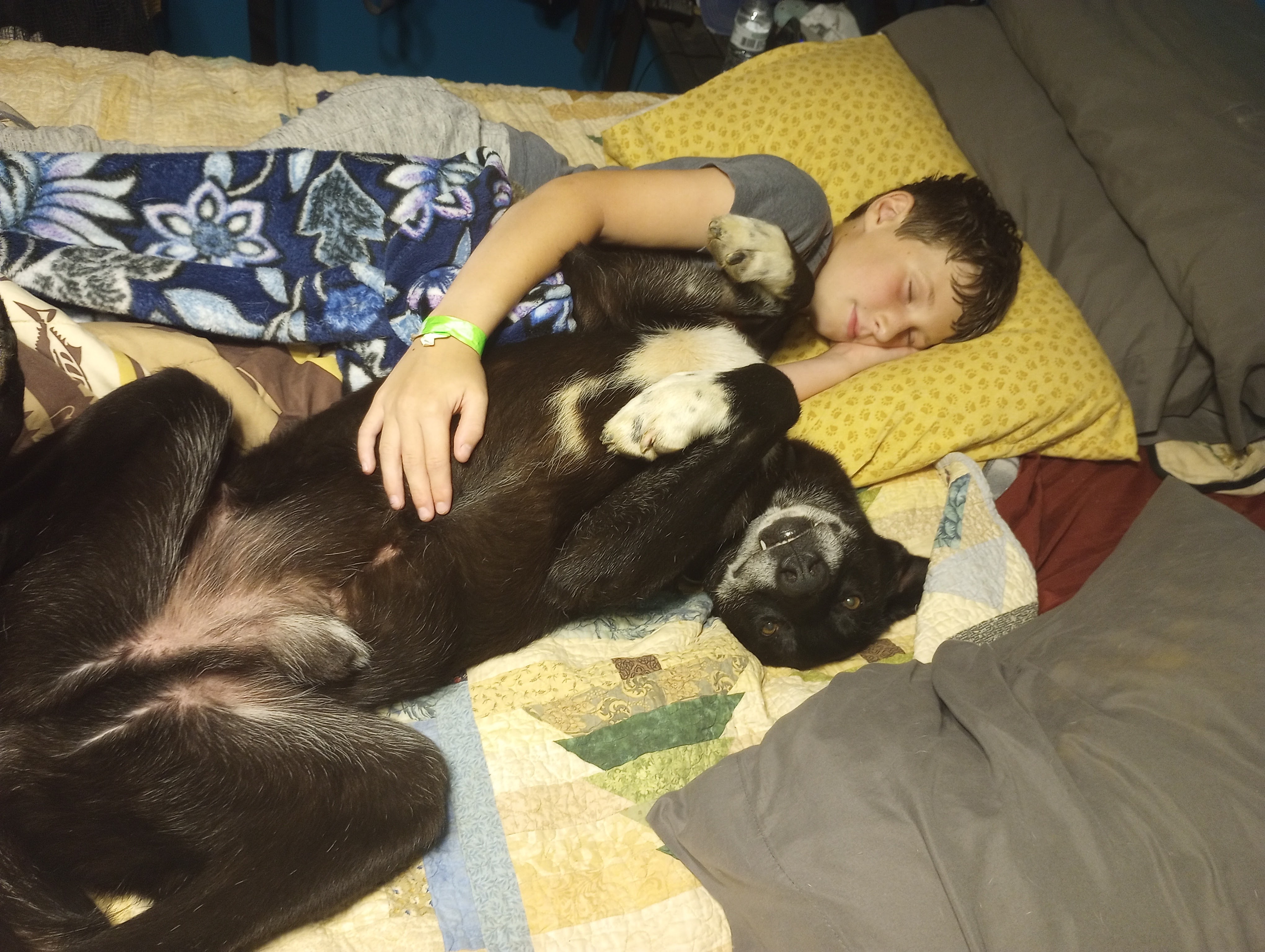 The end came suddenly and peaceful for Pilgrim. After a fun weekend of beating down a couple of miles of grass on a state forestry trail, Pilgrim woke us up early Monday morning to tell us that he didn’t feel well. He asked to go outside, but didn’t quite make it before vomiting in the floor. We got everything cleaned up and some nausea meds in him. He continued to drink well, so we got Ian ready for school and sent Pilgrim off to the vet with Brinn for a quick check up to see if he’d picked up a virus. As I drove Ian to school, I promised that I would call the school to give him an update on Pilgrim.