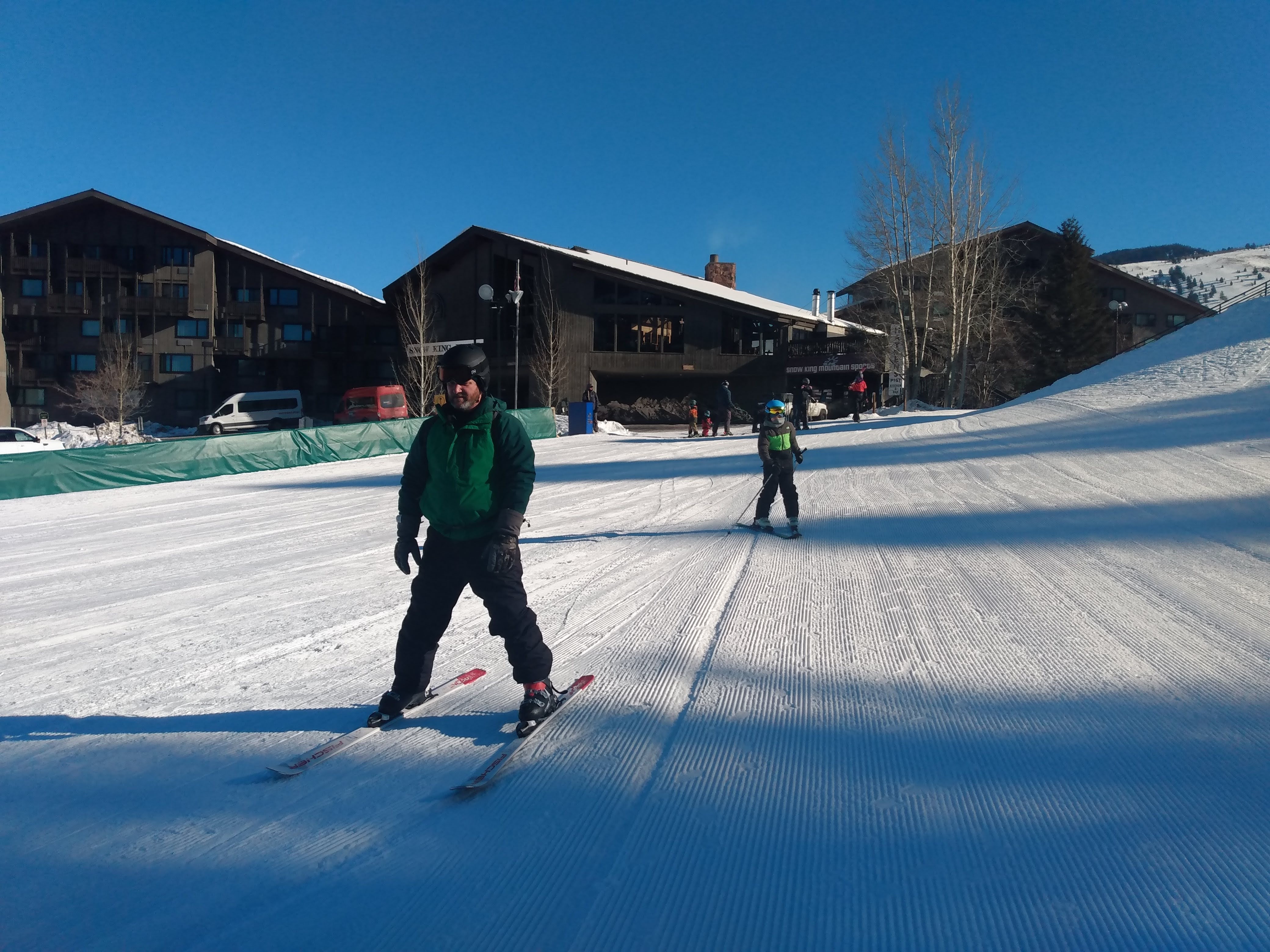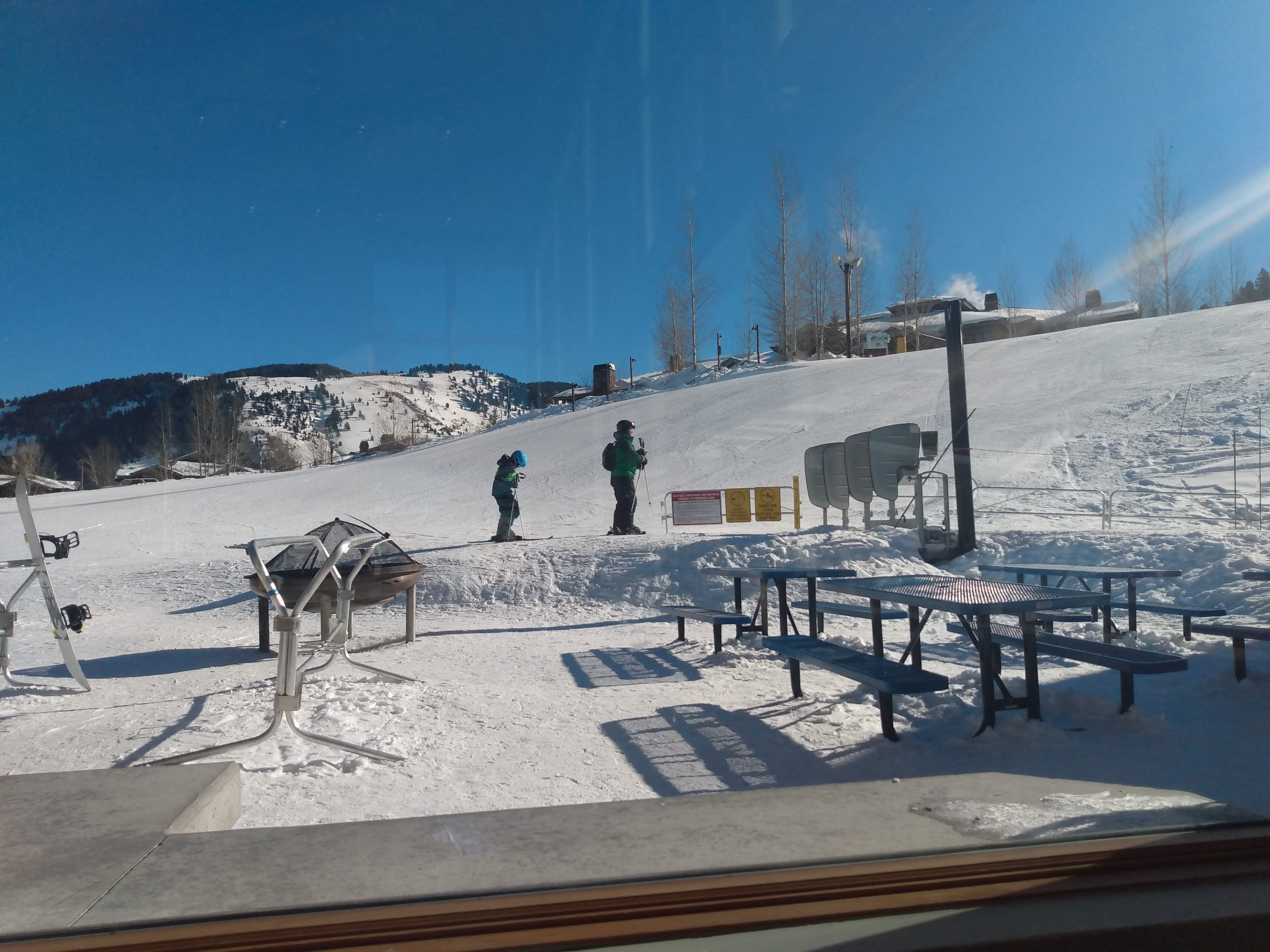 After another breakfast cooked in our suite, we loaded up Brinn and Ian along with all their layers and we drove the short distance to Snow King. As the mountain is quite literally in town, it’s affectionately known as “Town Hill.” After a quick trip to the rental shop, the boys were outfitted and ready to go. Grandpapa and I stood at the top of the magic carpet to watch Ian cruise down the practice hill until he felt like he remembered what he was doing, then he was off to the lifts to head up the mountain. Grandpapa and I found squashy chairs by the big windows in the restaurant and were able to sip on cocoa as we waited to see the boys complete their first run.