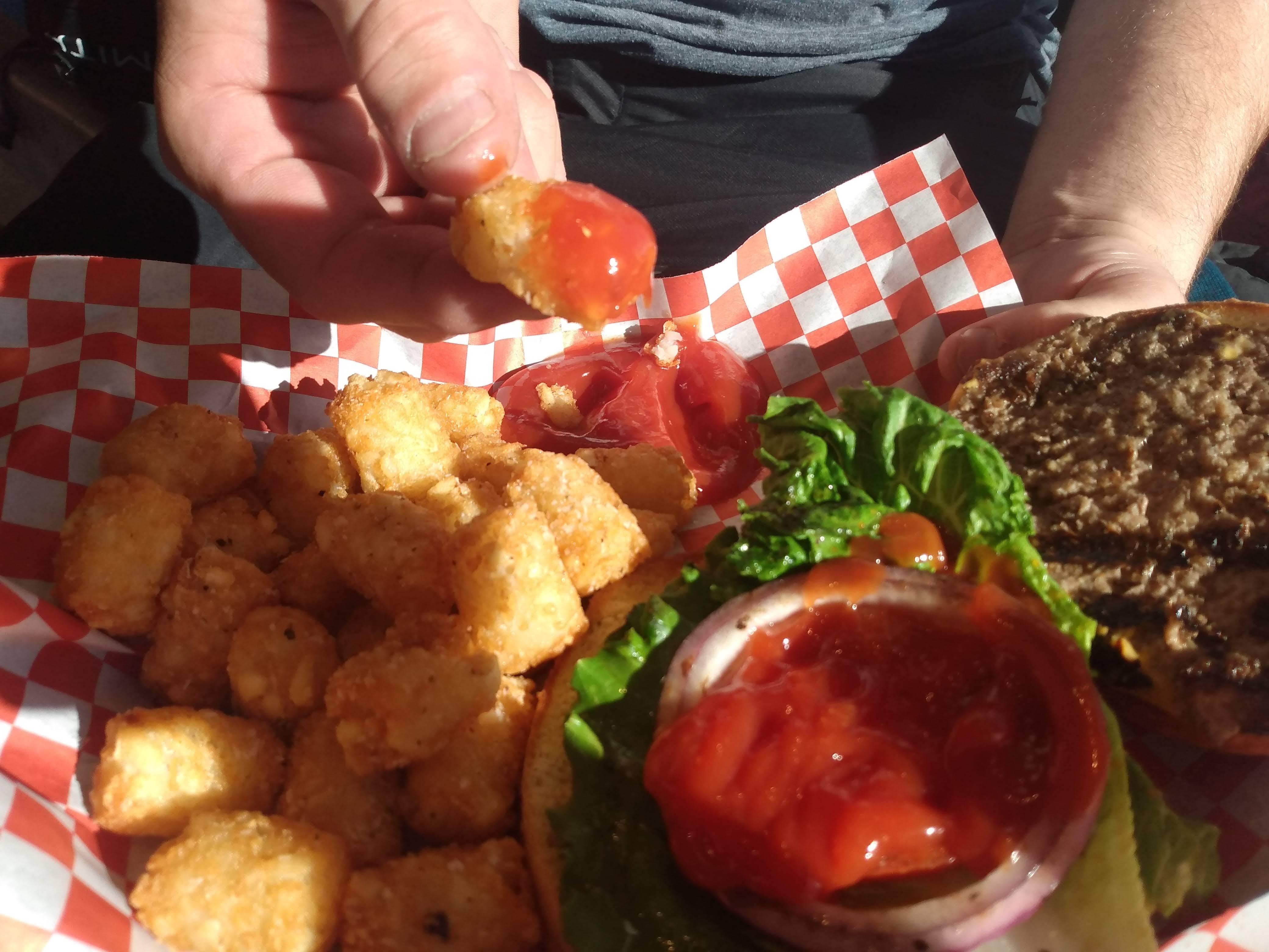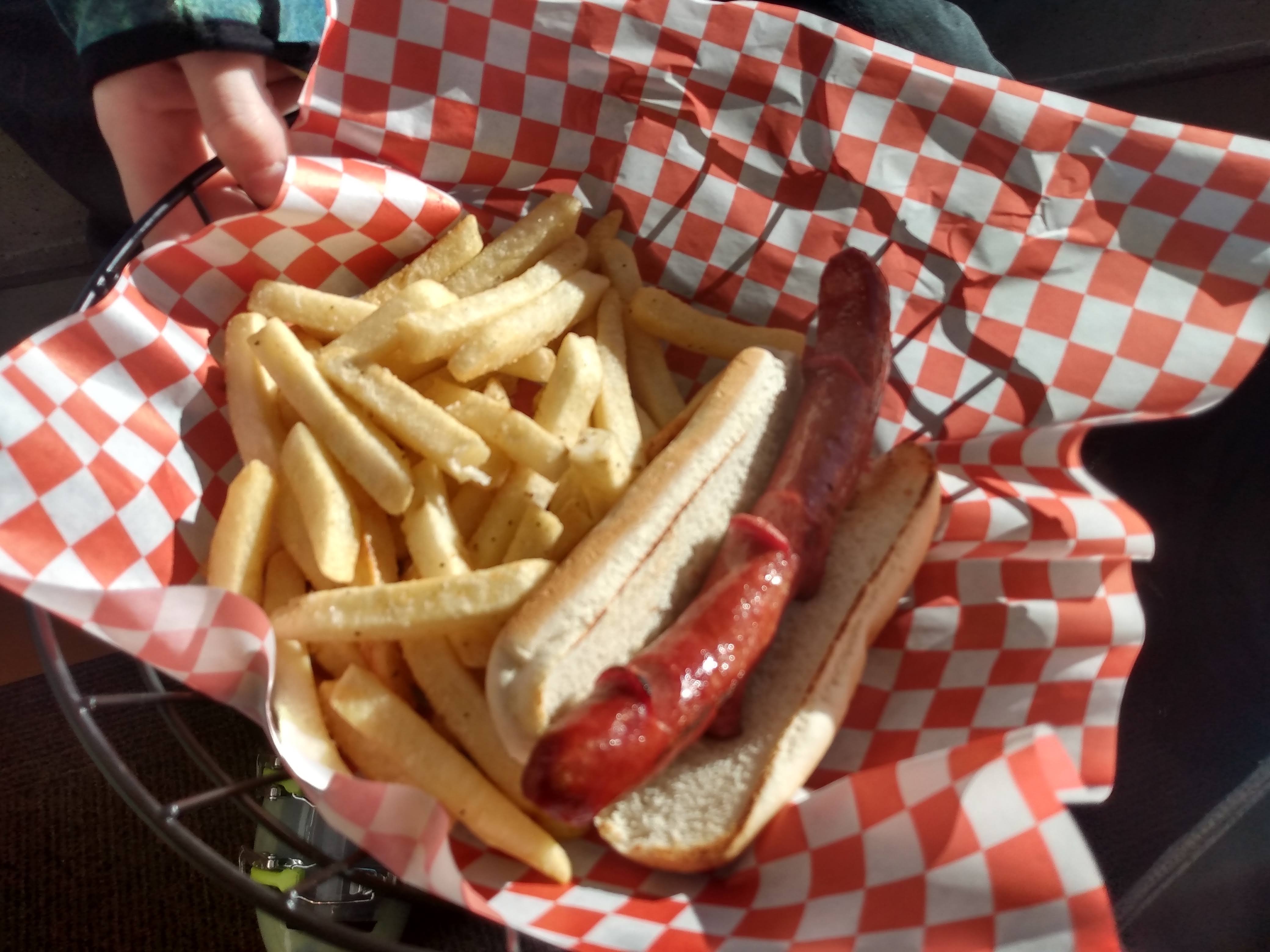 Brinn usually closes down the mountain when he’s skiing, but he couldn’t make it in the Tetons. After several hours and many runs down the mountain, he finally gave into exhaustion and he headed back to Jackson. My dad had scoped out dinner options while he’d spent the day walking around town and shopping, and had decided he wanted to try burgers at Jackson Drug. He and Brinn offered to wait for Ian and me to get back from mushing to accompany them to dinner, but we were battling our own exhaustion and asked them to bring us a box home. Brinn and Grandpapa each had the elk burger. They brought home a bison burger with sweet potato fries for me, and a grilled cheese with regular fries for Ian.