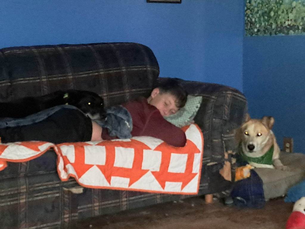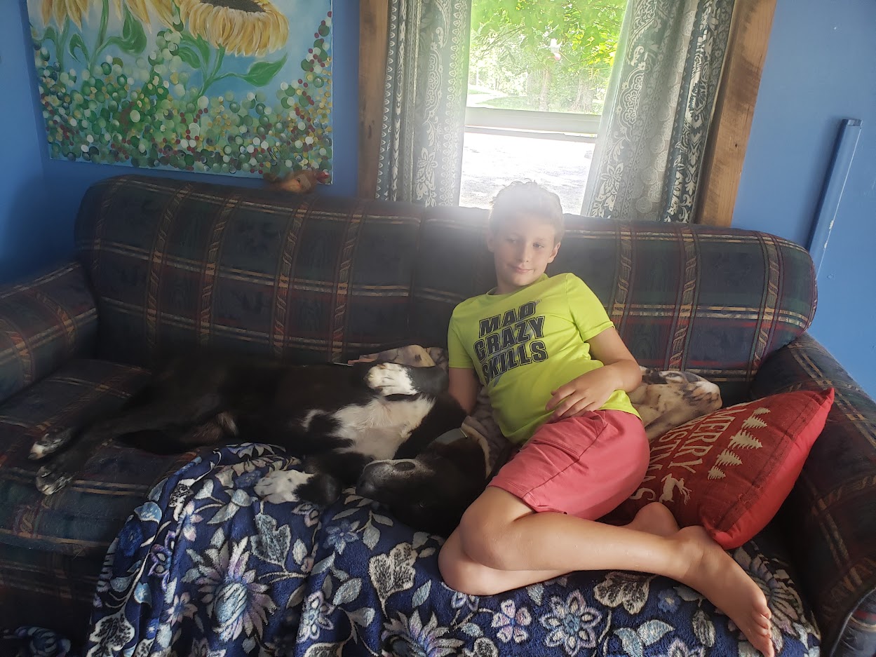 Pilgrim came to us April 25, 2022 with his mind made up to dive right into being our missing family member. We joked that Pilgrim had boom boom feet because he was always in motion unless he was on the couch. It took no time at all for him to identify this ancient piece of furniture as his personal retirement location. In 8 months, we all fell in love with this bossy, demanding fella. He went from shooting off like a rocket when we accidentally turned him loose, to staying right with us and begging for rubs. He soon learned that dogs only get treats when they sit, so he would run to the kitchen and sit on my feet the entire time I tried to cook dinner around him.