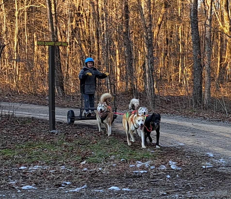 Last fall Ian finally had the opportunity to hook Balto up on the gang line to run with real sled dogs, then Bonnie and Jim graciously offered Ian the use of their mushing rig for a long-term loan. But with a two hour drive between us and Scout as an aging Quest retiree, we soon realized that we need some younger stock to teach Ian as well and Balto and Jenna to mush. Bonnie set out on her goal to find Ian the right lead dog, and began searching for a younger retired dog who could still run through the woods of Tennessee. During this process, we vetted several options that we had to pass on. Some racing line Sibes from New York sounded hopeful, but these were serious working dogs who needed to go to a real race home with a knowledgeable musher. Bonnie explained that she was looking specifically for a solid gee haw leader who would also be a good pet as Ian’s not yet equipped to run a dog yard comprised of strictly working dogs. So more dogs came and went through Bonnie’s careful scrutiny.